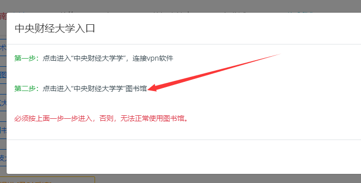 点击“进入中央财经大学图书馆”,如下图所示: