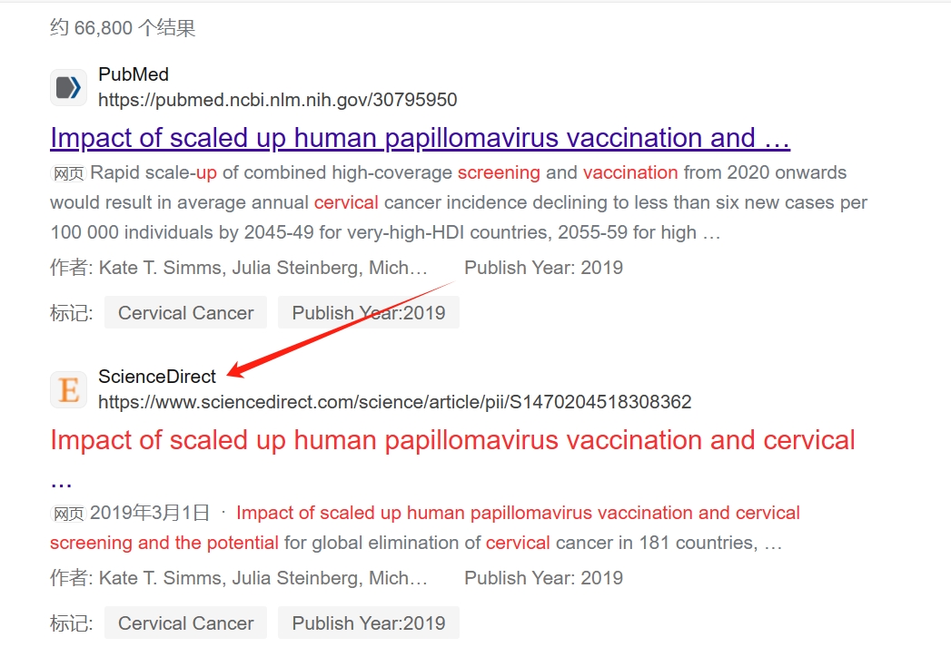再演示搜索一篇英文数据库,假设要下载论文为“ Impact of scaled up human papillomavirus vaccination and