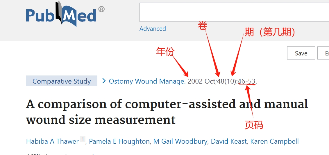 先弄明白搜索条件,此网站的搜索条件是填写文献的“年份”、“卷”和“期”,这三个关键词在pubmed搜索后的文献那里,如下图所示: