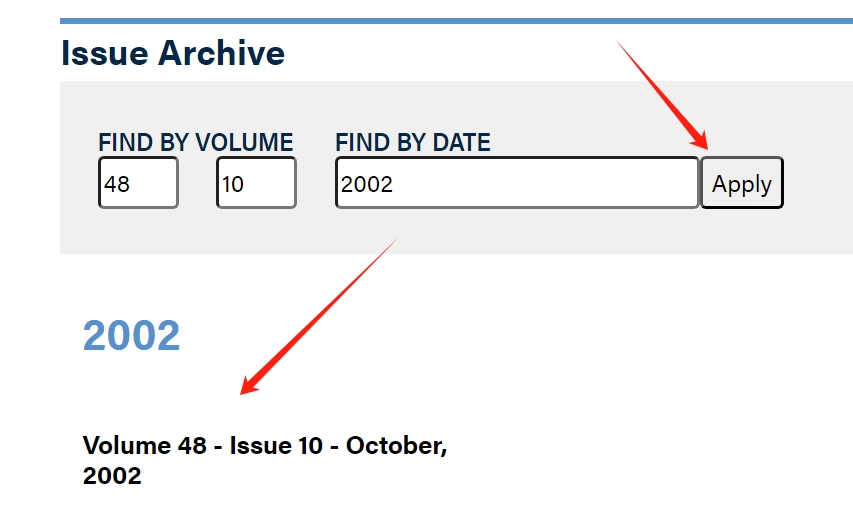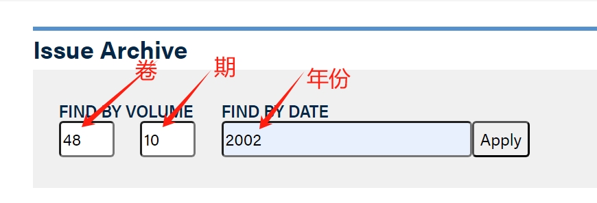 这里搜索又分为2种,一种直接通过搜索文献名称(点击网站上面的search搜索即可),另一种通过“Issue Archive”搜索,通过search搜索文献名称比较简单,这里不简介,下面介绍第二种方法。