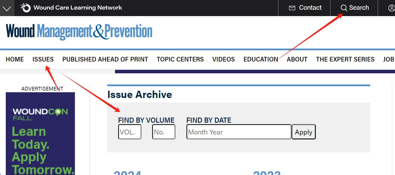 第一步:点击杂志名称(本示例杂志名是Ostomy Wound Manage)